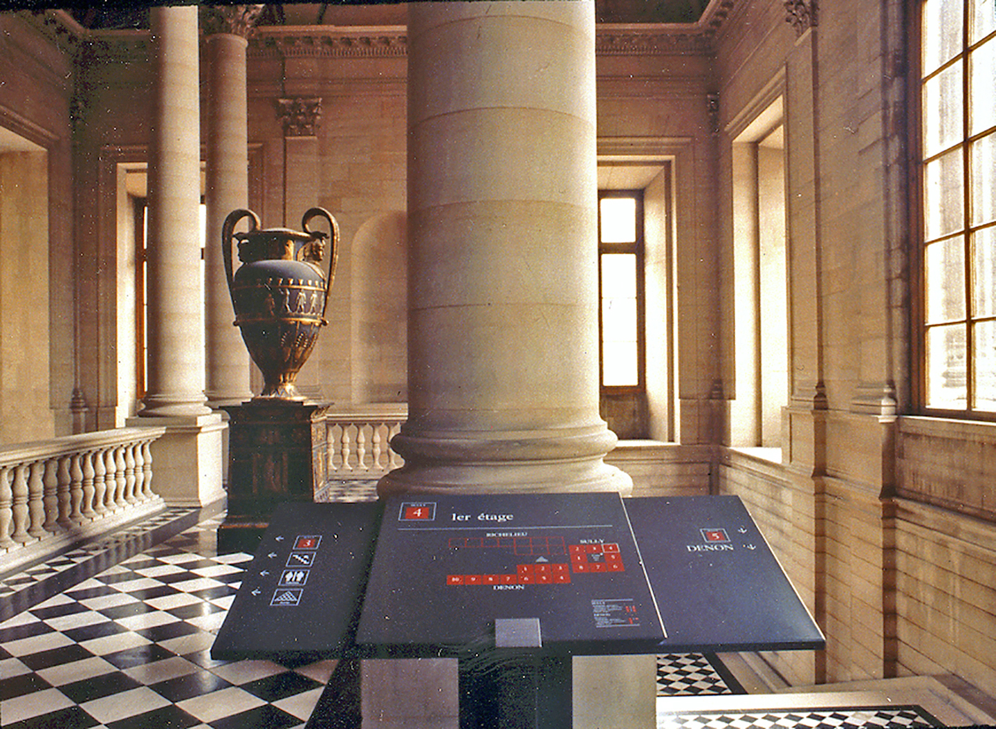 In 1985 P+K were hired as the ‘concepteurs principals’ for the Musee du Louvre’s Visitor Information System. The project was done for and with Ken Carbone of CSA, and I.M. Pei.
